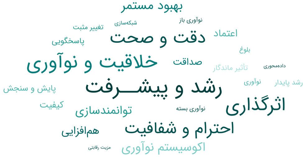 ما با همافــزایی درونگروهی و همکاری با اکوسیستم، شــناسایی، توانمندسازی و سرمایهگذاری روی تیمهای نوآور را راهبری میکنیم تا رشدِ نوآوری به شاخص اصلی ارزشآفرینی گروه تبدیل شود.