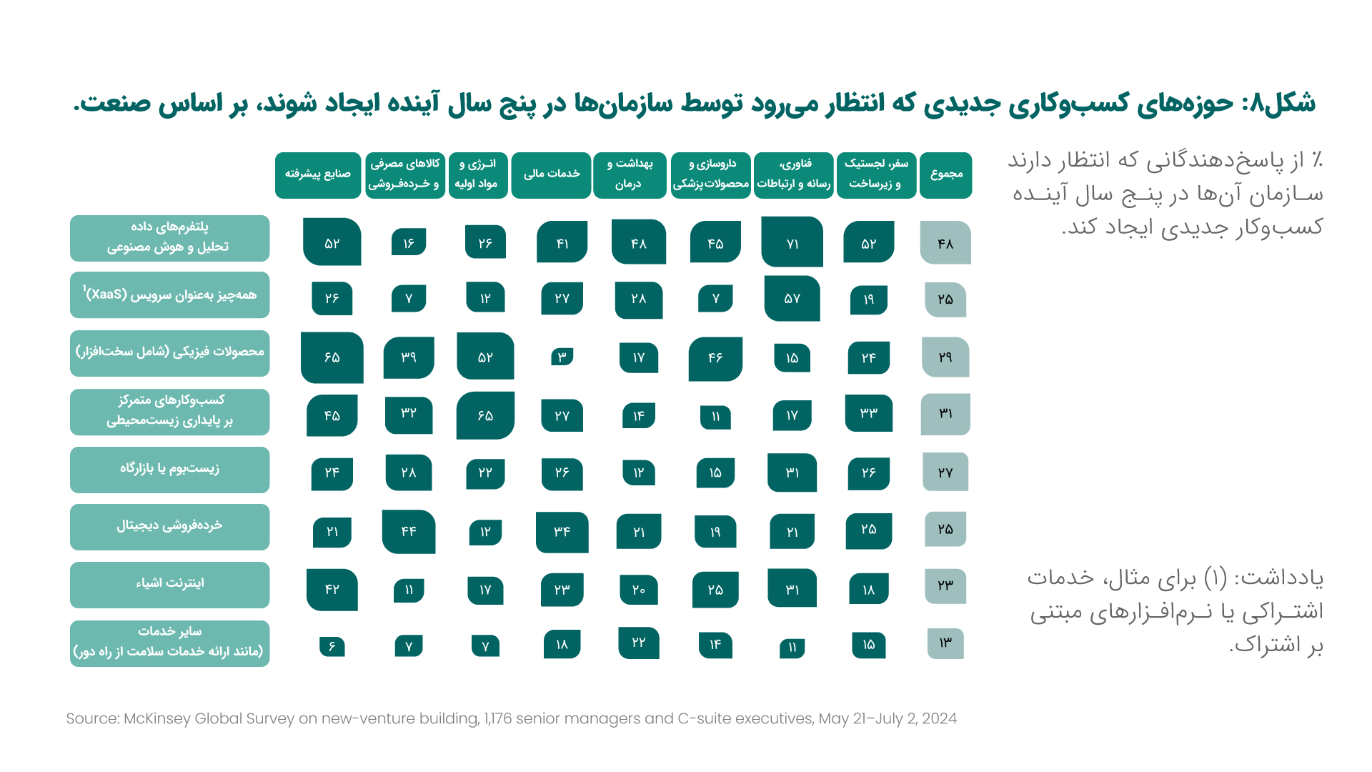 تحلیل بیش از ۱۱۰۰ مدیر اجرایی در نظرسنجی جهانی McKinsey نشان می‌دهد شرکت‌هایی که حداقل ۲۰٪ از سرمایه رشد خود را به ساخت کسب‌وکارهای جدید اختصاص می‌دهند، رشد درآمدی بالاتری دارند. این نسبت در شرکت‌های بزرگ با درآمد بالای یک میلیارد دلار، می‌تواند تا ۲.۵ درصد رشد بیشتر سالانه ایجاد کند — که برابر با ۵۰٪ رشد بیشتر نسبت به میانگین جهانی است.[۱]