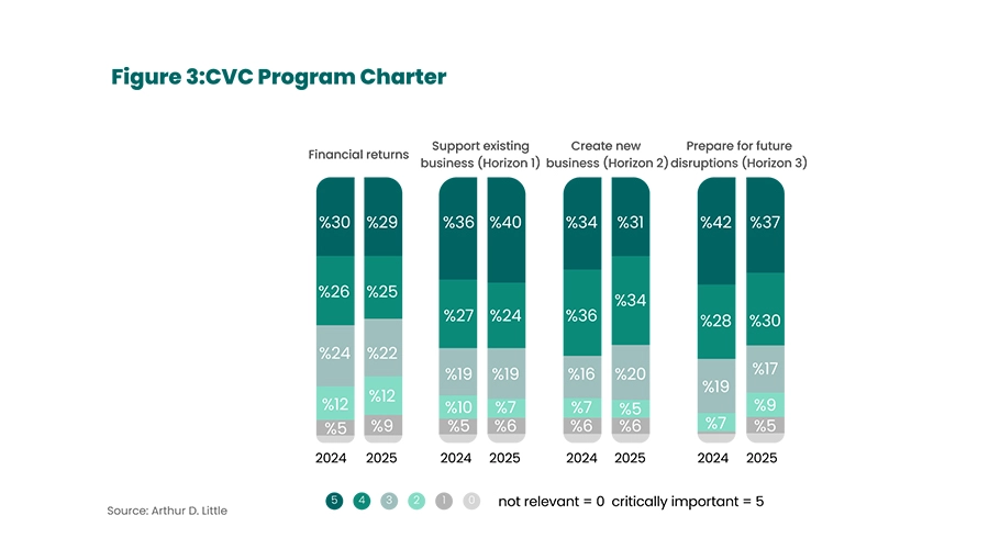 In contrast, the 2024 survey showed a stronger focus on long-term, future-oriented innovations (Horizon 3). This shift indicates that, amid current market conditions, CVCs are increasingly seeking to strengthen their parent companies’ core business operations rather than investing primarily in entirely new technologies or business models. [10]