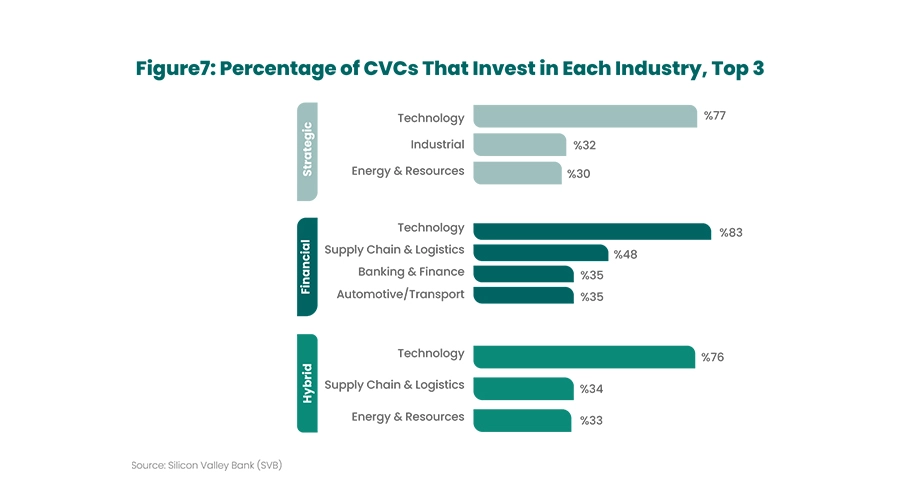 That said, this evolution varies significantly across industries, depending on factors such as innovation maturity, capital intensity, and market dynamics. Figure 7 illustrates the main areas of focus among different CVC models in 2024. [12]