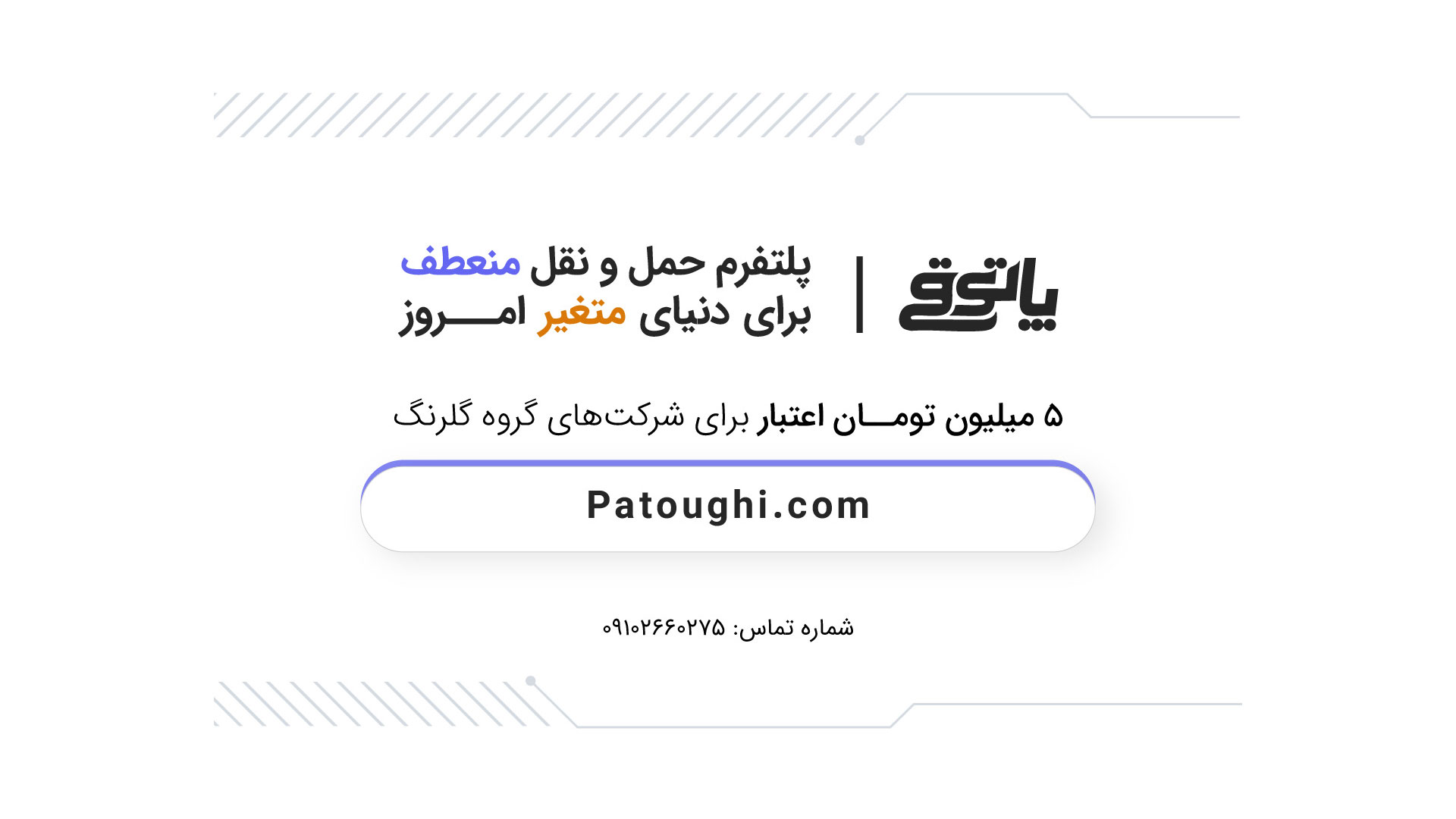 مزیت اصلی پاتوقی برای شرکت‌های گروه گلرنگ، صرفاً در ارائه یک خدمت حمل خلاصه نمی‌شود، بلکه در فراهم ساختن یک راهکار عملیاتی و فناورانه برای ارتقای هماهنگی، سرعت، شفافیت و بهره‌وری در زنجیره تأمین درون‌گروهی معنا می‌یابد. این پلتفرم می‌تواند متناسب با نیاز هر شرکت، در حوزه‌هایی نظیر توزیع شهری، ارسال بین واحدی، جابه‌جایی‌های موردی، تأمین فوری و پشتیبانی فروش، به عنوان یک زیرساخت قابل توسعه و مقیاس‌پذیر ایفای نقش کند. قابلیت انعطاف‌پذیری در طراحی مدل همکاری نیز این امکان را فراهم می‌آورد که خدمات پاتوقی متناسب با ساختار عملیاتی، حجم تقاضا و الزامات اختصاصی هر شرکت تنظیم و ارائه شود.